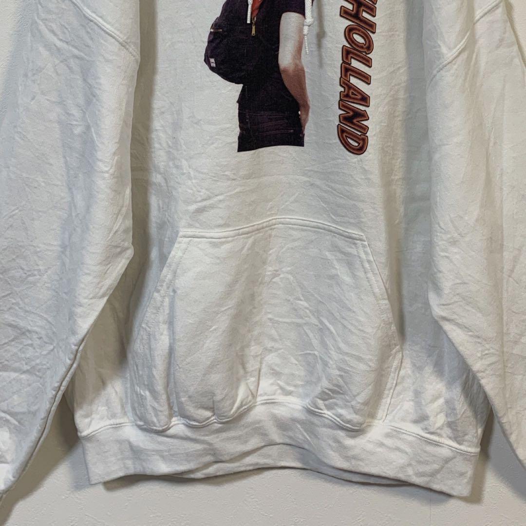 トム・ホランドのプリントが施されたホワイトフード付きパーカー。