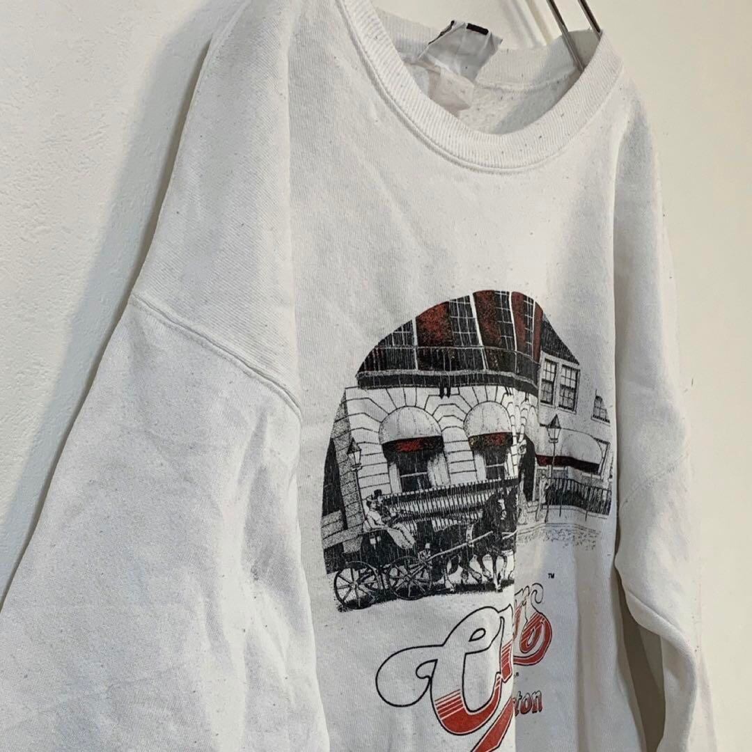 Cheers Bostonのグラフィックが特徴のホワイトスウェットシャツ。
