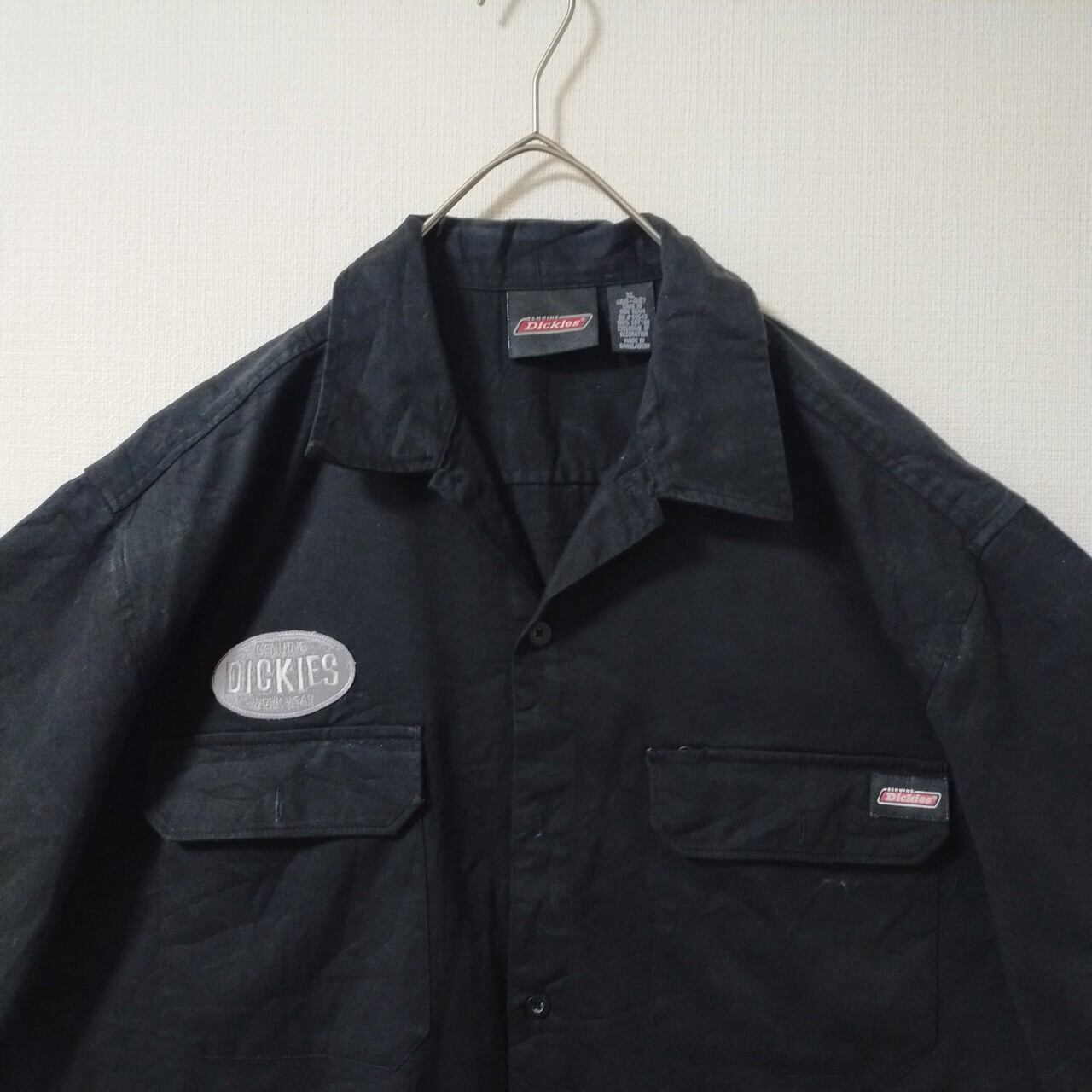 ディッキーズ Dickies 半袖シャツ 黒 刺繍ワッペン 胸ポケット付き XL