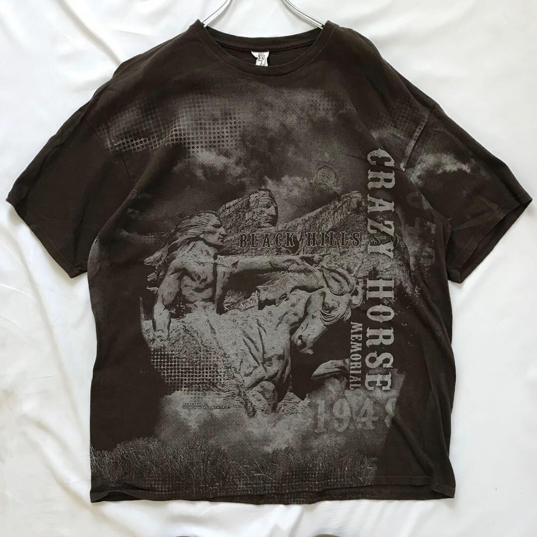 1947年 ブラックヒルズ記念碑 を描いた ふTシャツです。サイズXLでゆったりしています。