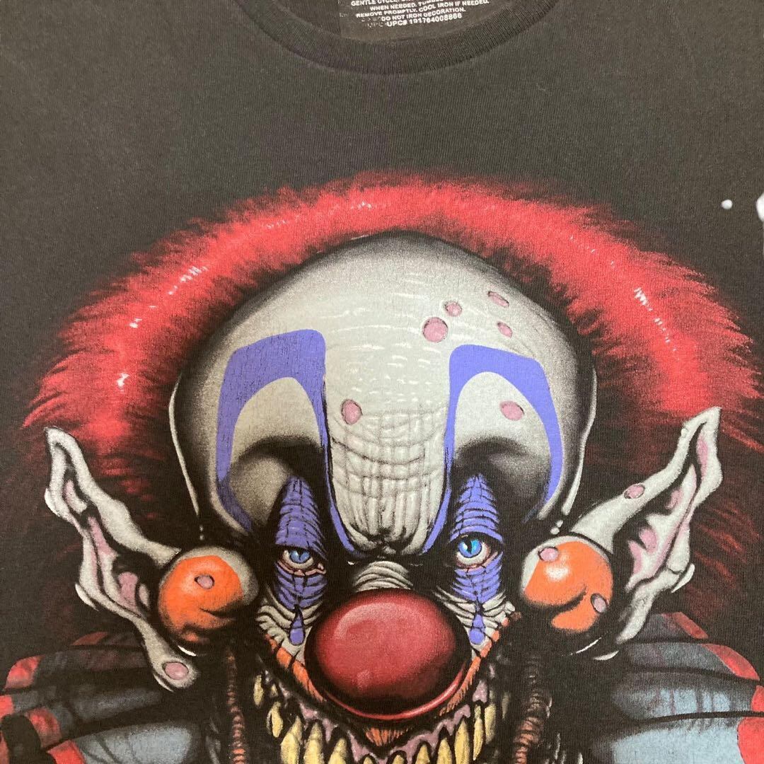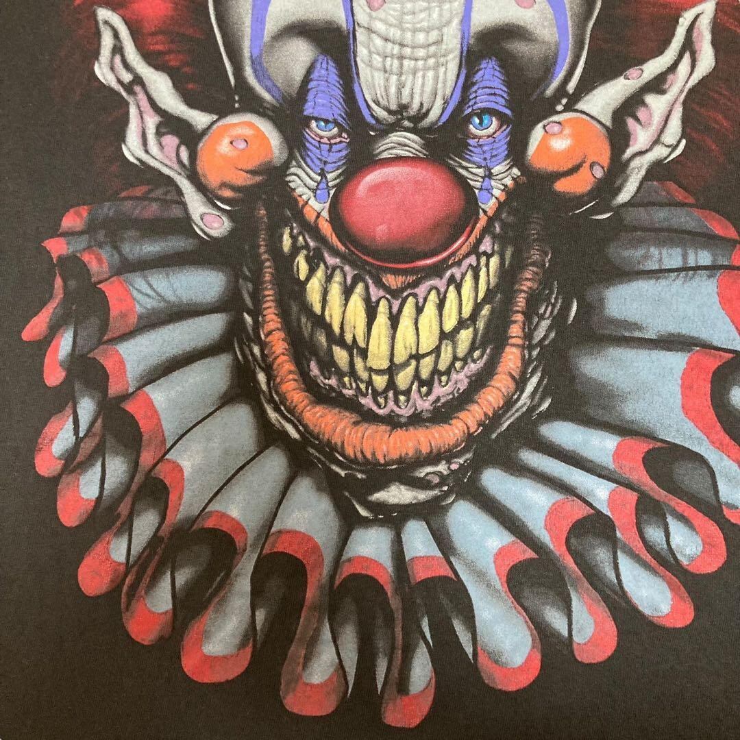悪魔系ピエロ プリントTシャツ 半袖 ブラック ホラーシャツ