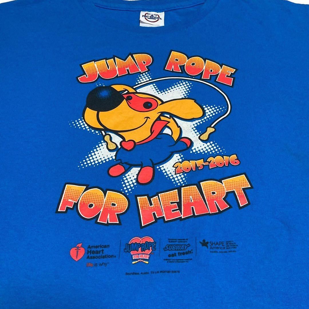 明るめのブルーの生地に、ヒーロー服の犬の個性的なプリントが印象的なデザインです。