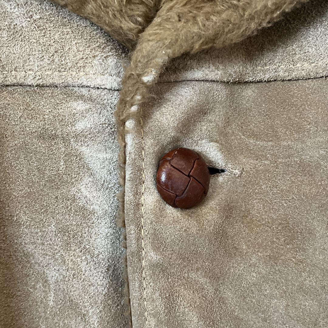 このジャケットは、ベージュのレザー素材で作られており、ファーの襟が特徴です。シンプルながらも洗練されたデザインで、カジュアルからフォーマルまで幅広いシーンで活躍します。